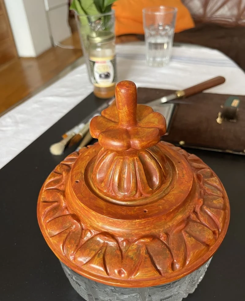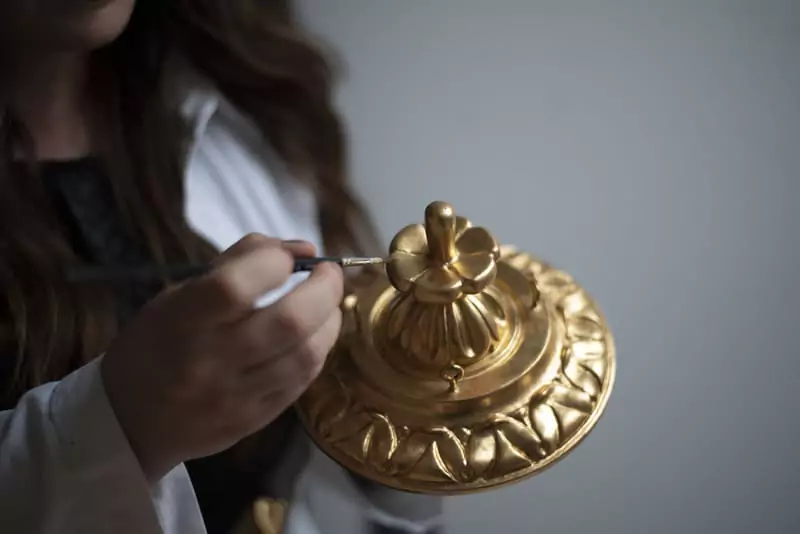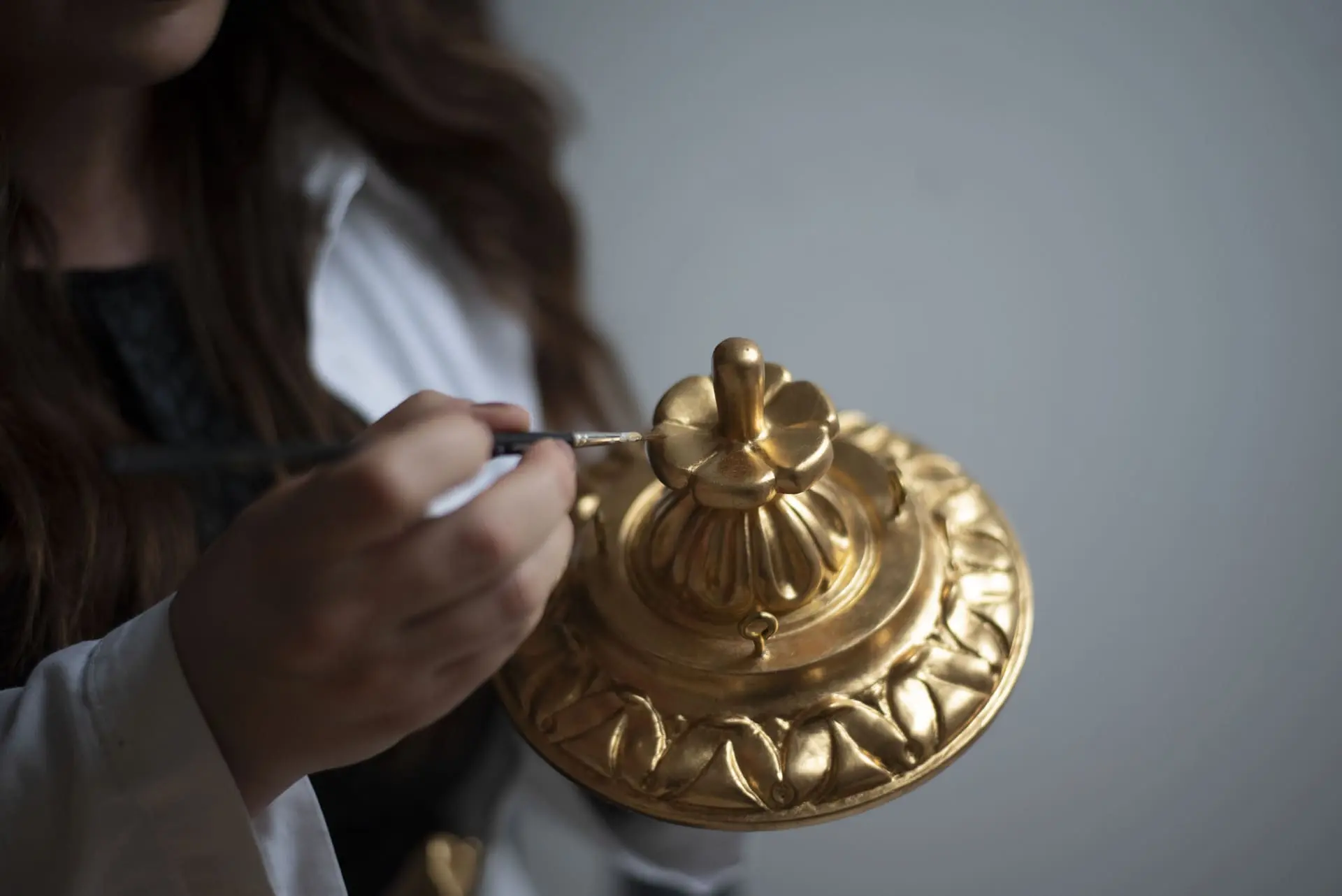 Tehnika kojom je luster oslikan je polimentna pozlata (originalni/izvorni sloj) na kojoj je oslik imitacije zlata. Oslik imitacije zlata je izveden na cijelu polimentnu pozlatu, a u konveksnim udubljenjima je izveden direktno na krednu podlogu. Na tim dijelovima (udubljenjima) nije nanesena polimentna pozlata u izvornom sloju.