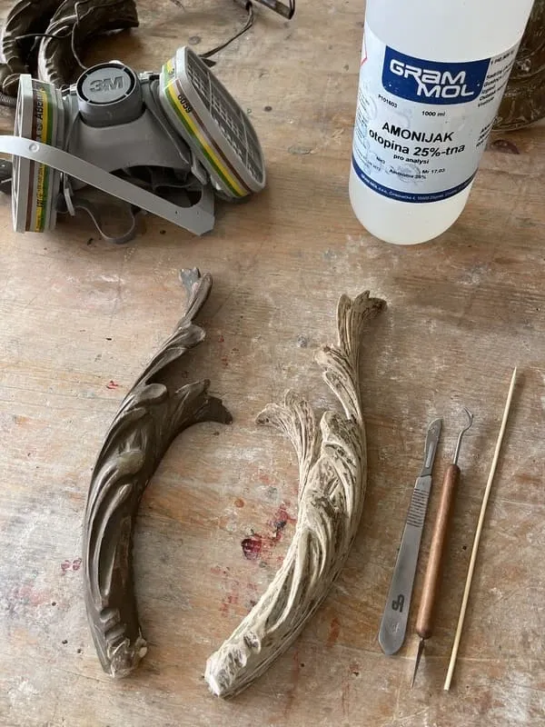Na dva veća elementa nedostajale su latice cvjetova, pojedine kuglice, te ostali manji nedostaci koje je bilo potrebno rekonstruirati u drvu lipe, te prilagoditi u pozlati originalu.